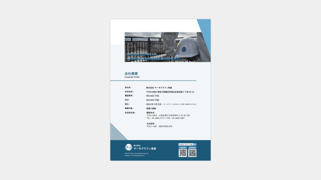 今回、ご依頼いただいた雨漏り調査ドットコムさま (株式会社サーモグラフィ検査さま)には、